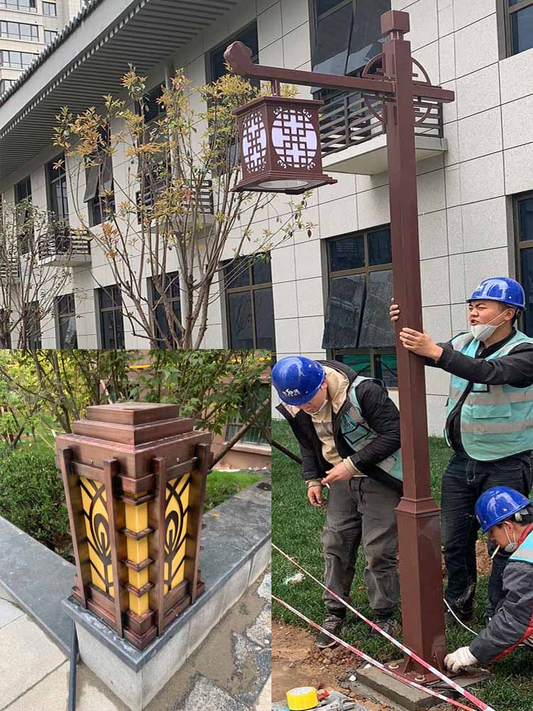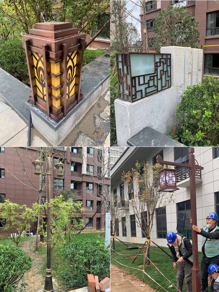 簡介—— 陜建翠園錦繡庭院燈、柱頭燈項目,是我公司2020年做的地產項目,項目當地位于西安市長安區航天大道,該項目的燈具主要是以復古為主,燈體的顏色采用古銅色,與整個項目的建筑特點相結合。