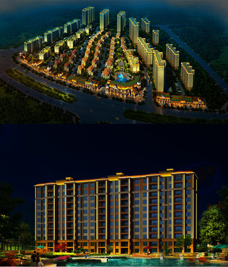 碧桂園小區(qū)建筑泛光照明,建筑輪廓照明和局部重點照明進行建筑環(huán)境景觀的在塑造,設(shè)計中舍棄了景觀中繁瑣細節(jié)的表現(xiàn),將較直觀的景觀以大氣的燈光渲染出來,營造大氣的燈光氛圍,以節(jié)能而質(zhì)樸的燈光為市民營造一個優(yōu)美高雅的夜間環(huán)境,為韓城夜色添了一道亮麗風(fēng)景。打造出綠色的主題思想。