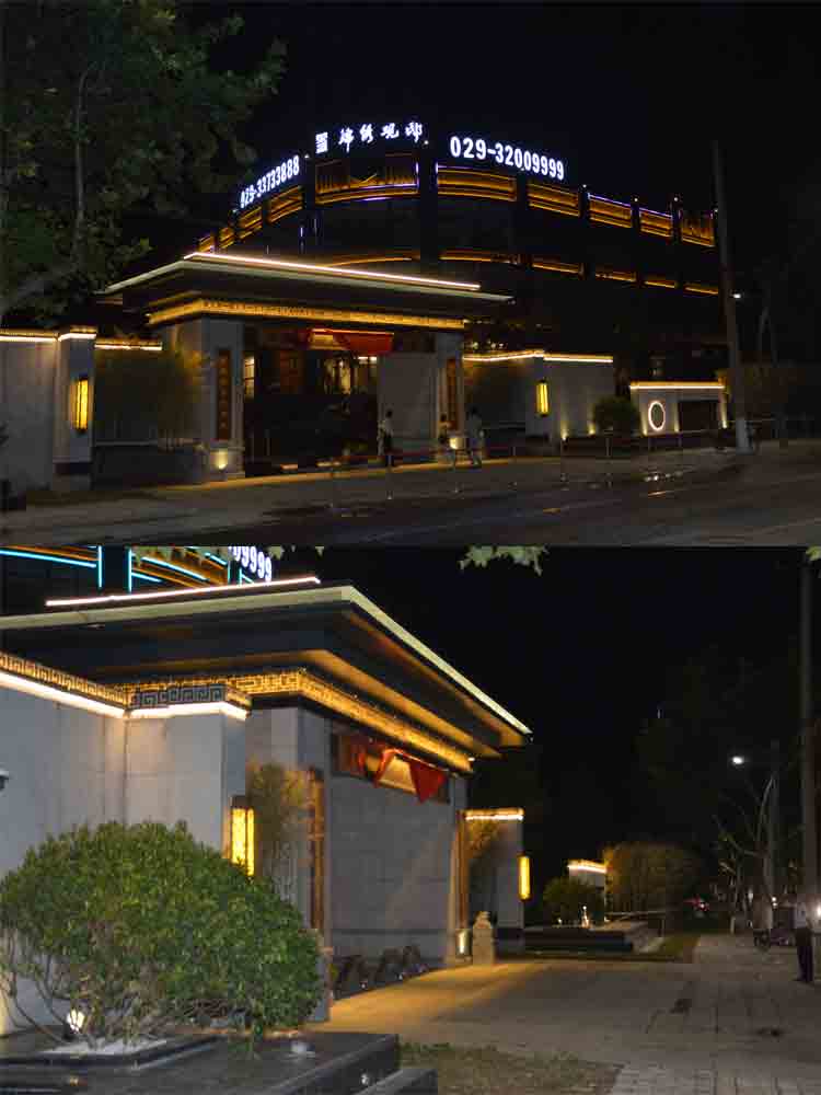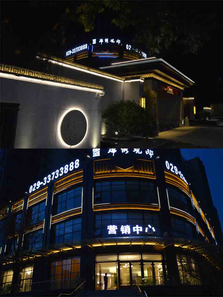 2018 榮盛景秀觀邸售樓部亮化,蘭光設計師根據其榮盛景秀觀邸售樓部商業屬性,商業照明設計明亮而醒目,營造商業經營的夜景氛圍。以靜態的暖色燈光將其打亮,凸顯雅致。“榮盛景秀觀邸”標志以高亮度的燈光,吸引顧客注意,增強商業宣傳力度。景觀燈造型與建筑外立面造型完美融合,晚上光斑效果與綠植景觀交相輝映,相映成趣!榮盛景秀觀邸的亮化設計施工,獲得了客戶的高度認可。