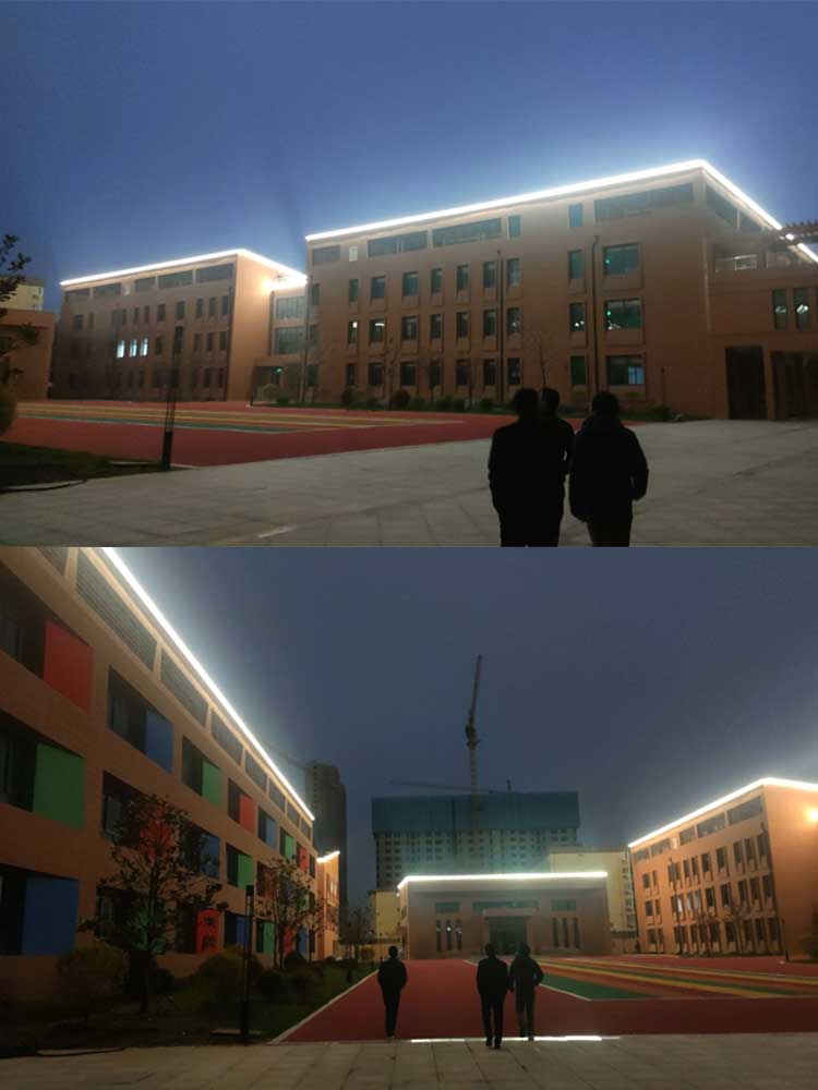 簡介—— 西安市兒童福利院亮化工程,主要是采用線條燈對樓體的頂部和側面輪廓進行勾勒,主樓安裝十二生肖發(fā)光造型,側墻采用圖案燈進行動畫投影,打出絢麗多彩的動畫卡通人物,與建筑的實用完整結合。