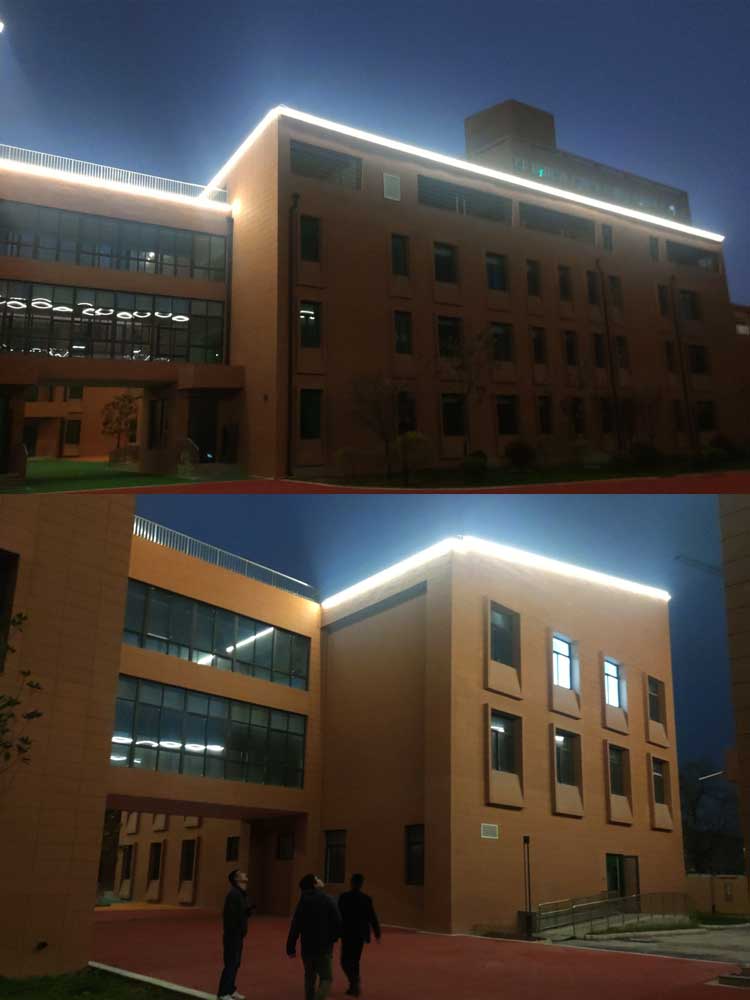 西安市兒童福利院亮化工程,主要是采用線條燈對樓體的頂部和側面輪廓進行勾勒,主樓安裝十二生肖發(fā)光造型,側墻采用圖案燈進行動畫投影,打出絢麗多彩的動畫卡通人物,與建筑的實用完整結合。