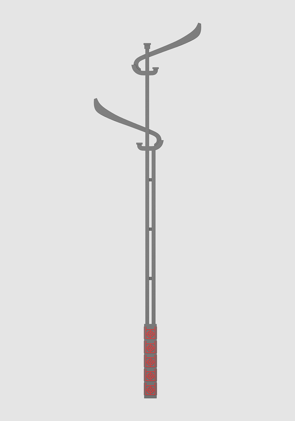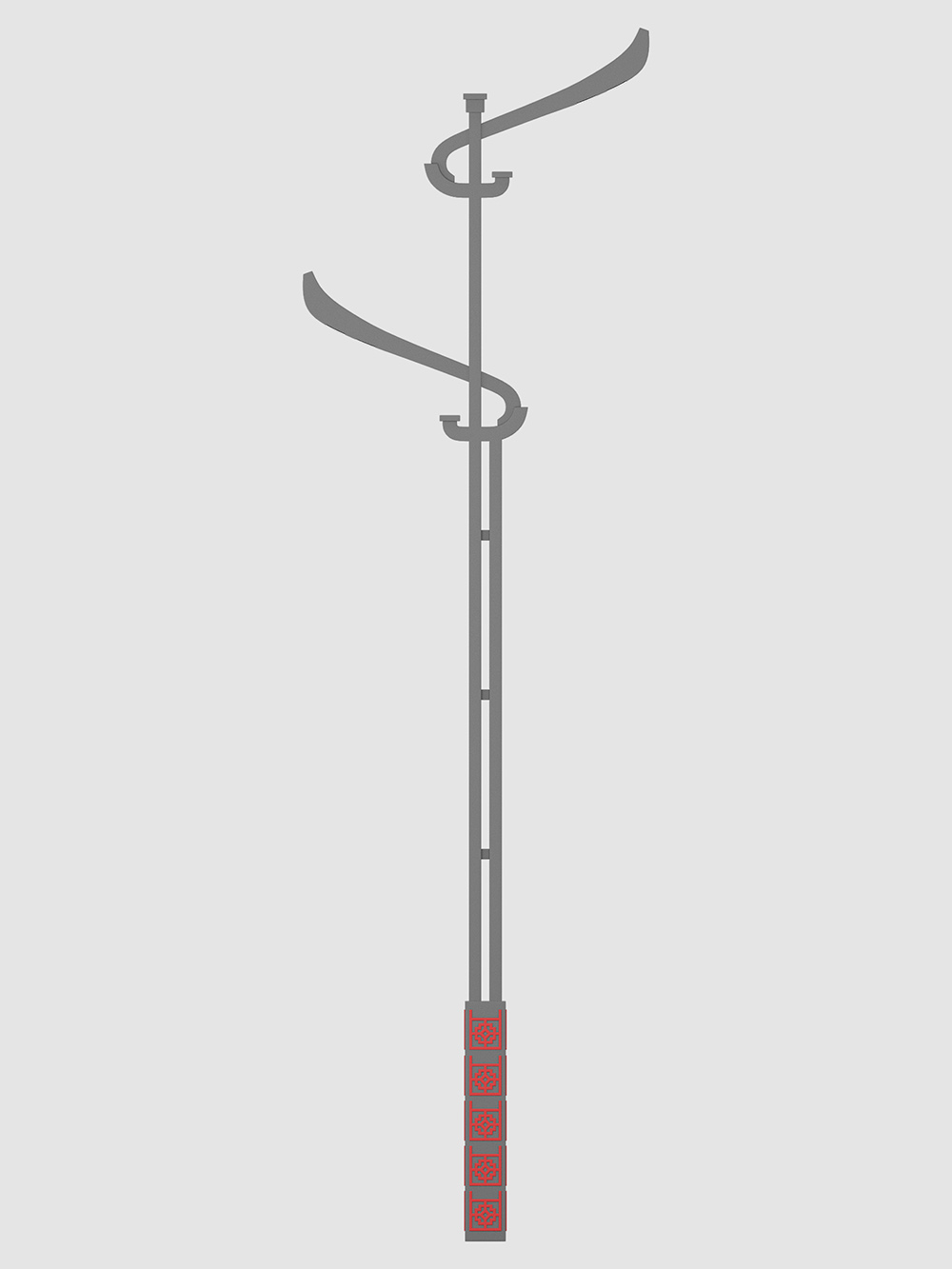 設計要點:此燈具借鑒古建筑馬頭墻的造型,頭部采用經典曲線,中部采用祥云圖案裝飾,下部采用精致曲度造型,整體優美流暢,簡而…